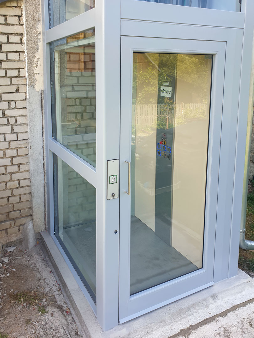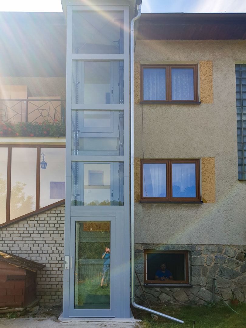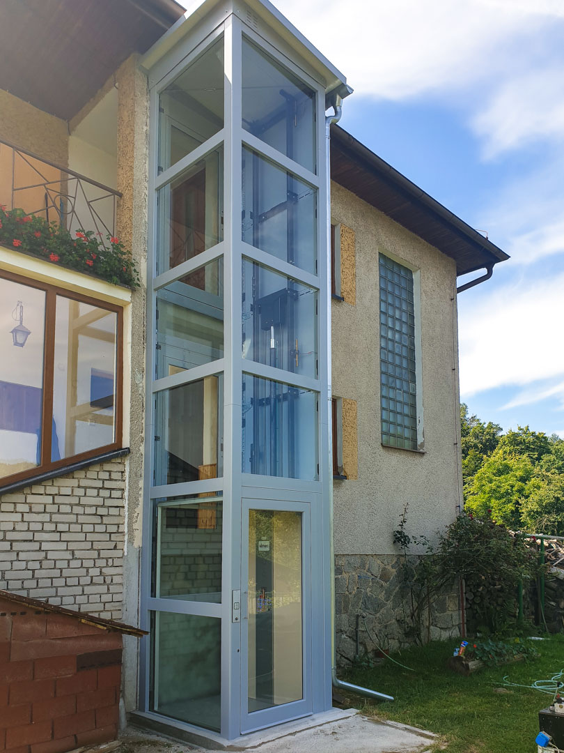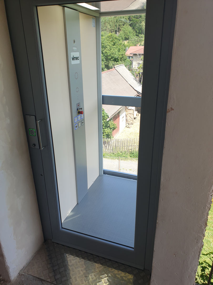 Vertikální zdvižná plošina E07 byla umístěna z vnější části budovy, kde neubírá obytný prostor v domě. Firma Vecom provedla kompletní montáž včetně všech potřebných stavebních úprav.