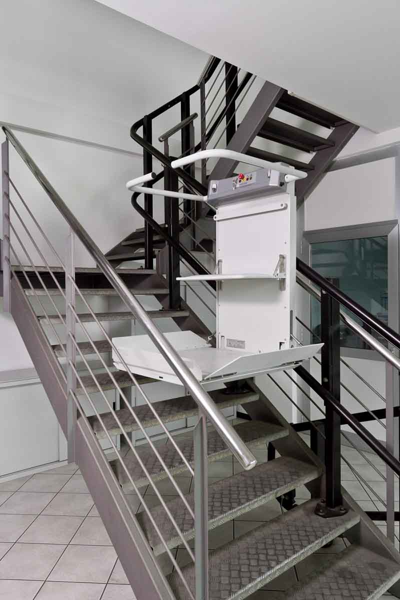 Pokud to prostorové dispozice umožňují, lze zdvižnou plošinu E07, nebo E10 instalovat v interiéru schodiště budovy.